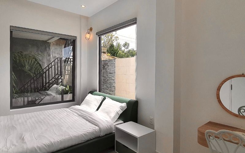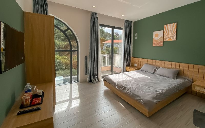 Thức dậy trong căn phòng Superior với tầm nhìn panorama bao quát toàn thung lũng xanh thẫm cùng view săn mây mộng mơ. Phòng có gam màu xanh nhẹ nhàng hoà cùng với cảnh vật xung quanh.