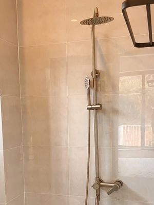 - Phòng tắm với hệ thống nước nóng mặt trời, vòi sen.